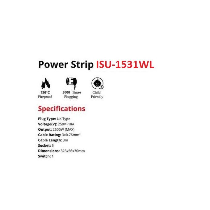 Itel 5 Sockets 3Metre Cord Power Strip Extension Box
